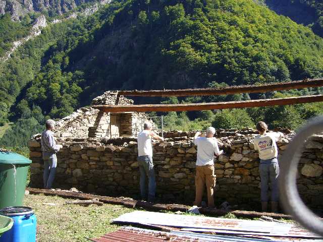 Weather has definitely not aided work today. The morning saw the second frame being constructed very quickly. However, rain was threatening all morning and then it finally arrived. We had an early lunch before the boys started levelling the second frame into place. Not ideal in the pouring rain. I decided to leave them to it, as there was nothing I could help with. They continued on battling with the elements to secure the frame in place as more bad weather is forecast for tomorrow and I think they would all have felt happier leaving it fast rather than dangling!!!