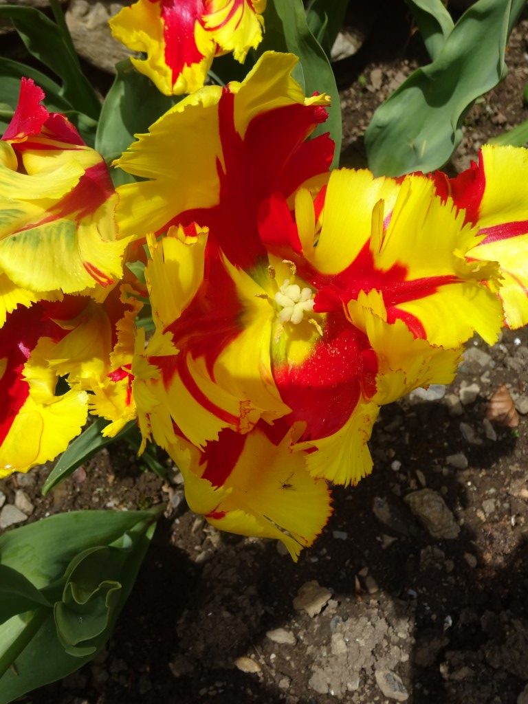Lots of colour about the place, Dad’s rose climbers on the front wall are incredible and just a mass of buds at the moment about to come out in full force, tubs are planted up, irises are out and amazing colour and our crazy yellow and red tulips could have won a prize we thought anyway! New hanging baskets in place, long tubs made to hang near the shower area so a blaze of colour there too.