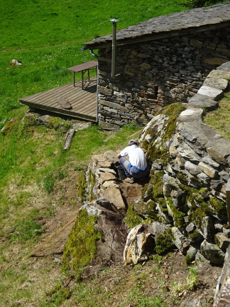 Al got stuck into wall building down near the “Naughty Corner” and it is now waiting for some small shrubs to go in there. It was a lot of digging out of tree roots, nettles and brambles. Followed by Al building the wall. I can’t cut a loaf of bread straight so not a chance of a straight wall from me!!! He’s done a grand job and hoping we can now get some shrubs in there just deciding what….Keith maybe your forsythia cuttings which you gave us and are looking very happy at the moment will do the trick.