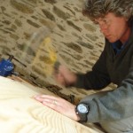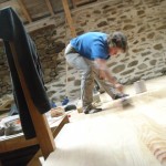 We then did the final bit of the first floor. Al fettled the fiddly bit at the edge while I sanded the floor and gave it a second varnish, looks good.