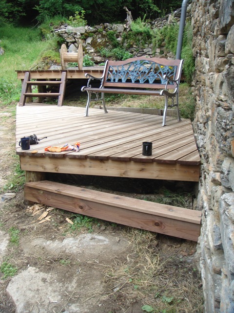 We finally had time to get the new plants in and to de nettle the terrace wall. All looking good. Over a cold diet coke we pondered where to put the steps linking the terrace before showers.