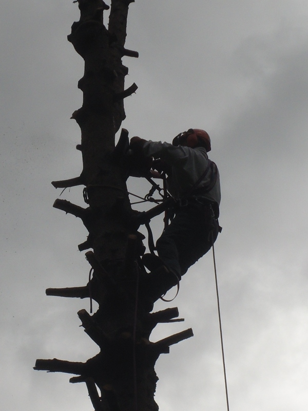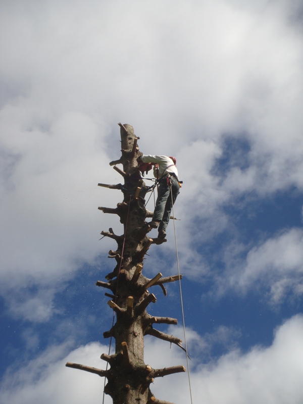 Simple lunch of left over Thai curry & pita bread before the rain eased enough to get back up the pine tree. Distance between tree and building = 9m. Height of tree = 7m. No need to cut owt more off so salvaged the kit and chopped some more wood for the fire.