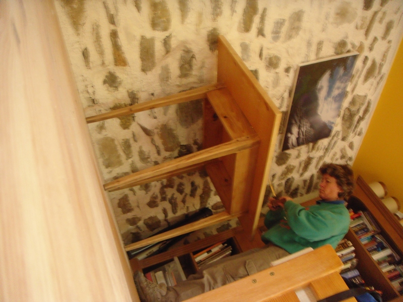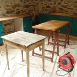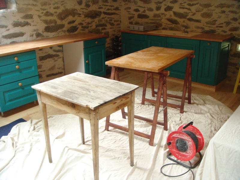 Next thing to do before lunch was to try and make the coffee table we had snaffled from Chamonix look presentable so we can use it. It just need a sand and a varnish from me and Al made 2 more slats to go beneath the main table to house magazines, books, games etc.