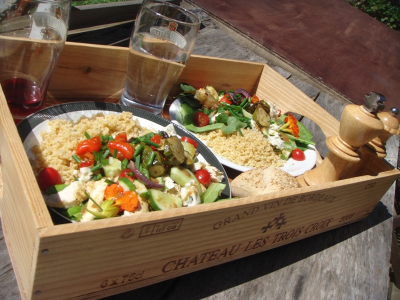Breakfast and then food preparation. Pick salad and wash, make dips, marinate meat, make bean salad, make potato salad, stock the fridge, sort out chairs etc etc.