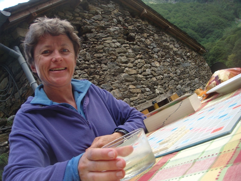 Lovely lunch of bread, cheese, pate and salad on teh terrace before Breezy gave Anne a lift down the piste to her car about 1600.