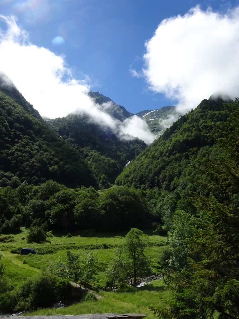 We have not been out exploring much as I have been full of cold but we got up to Cirque D’Anglade yesterday which was lovely, nobody about and got the weather just at the right time before it rained. There is still snow up there, an abundance of lovely wild flowers and the waterfall looking impressive, not a mushroom in sight though!!!