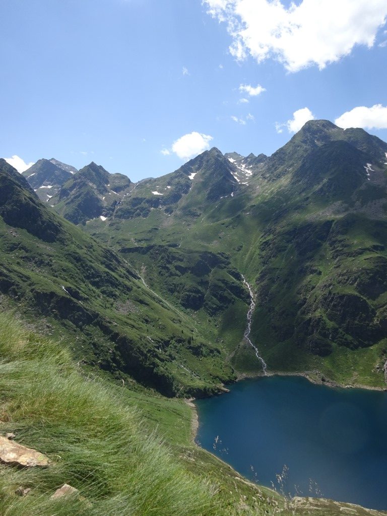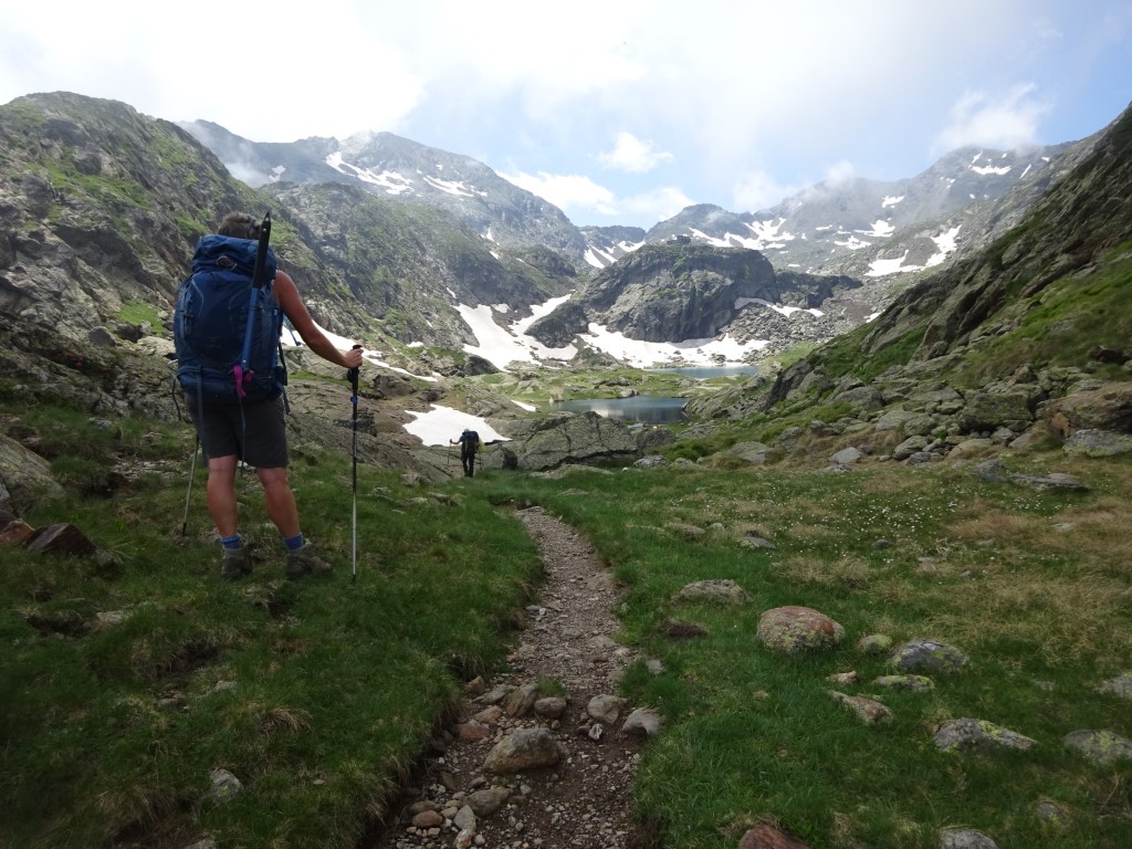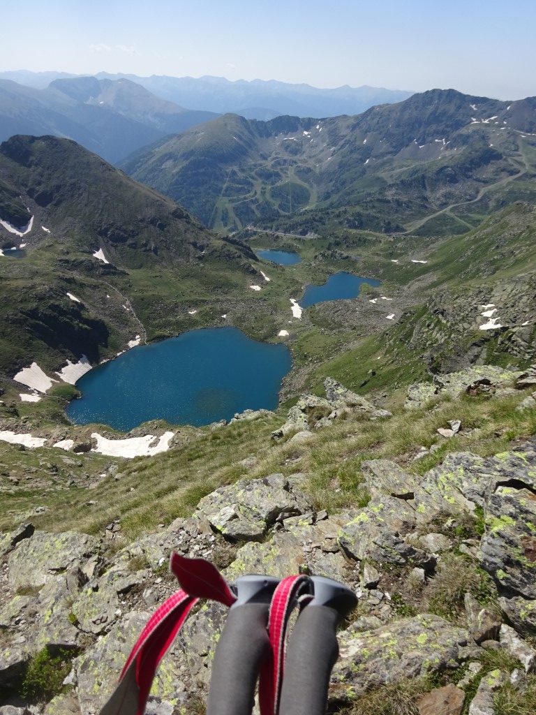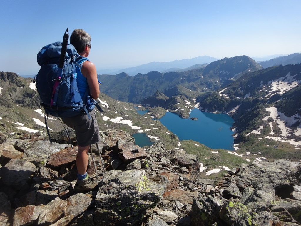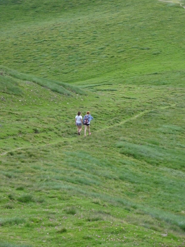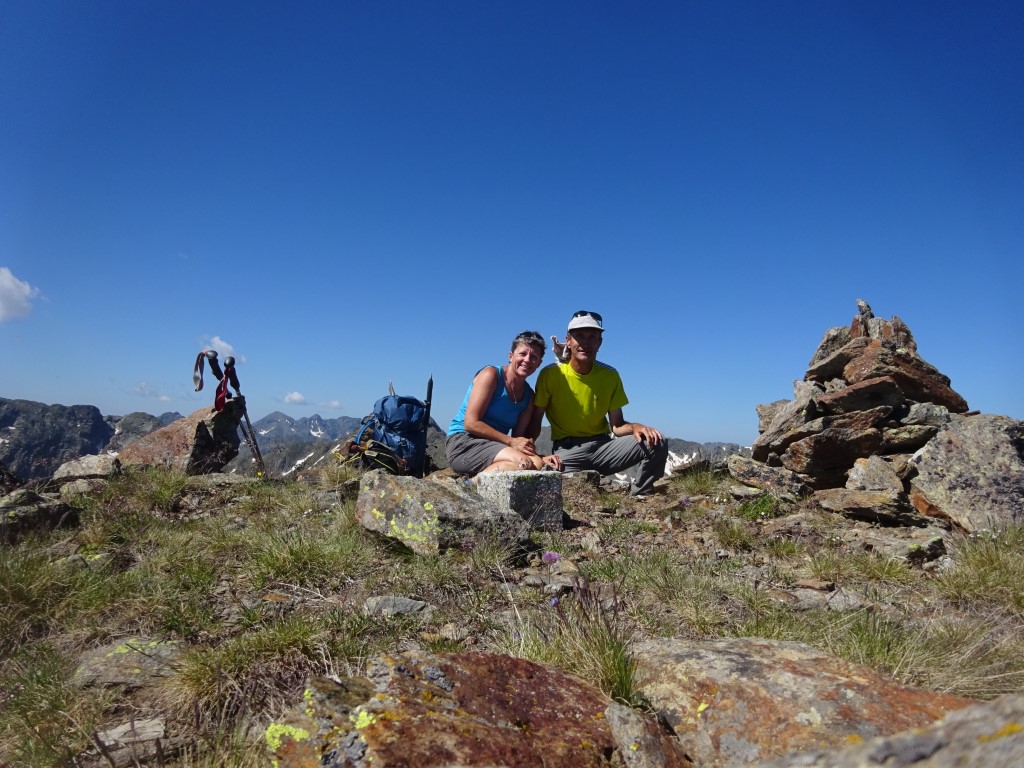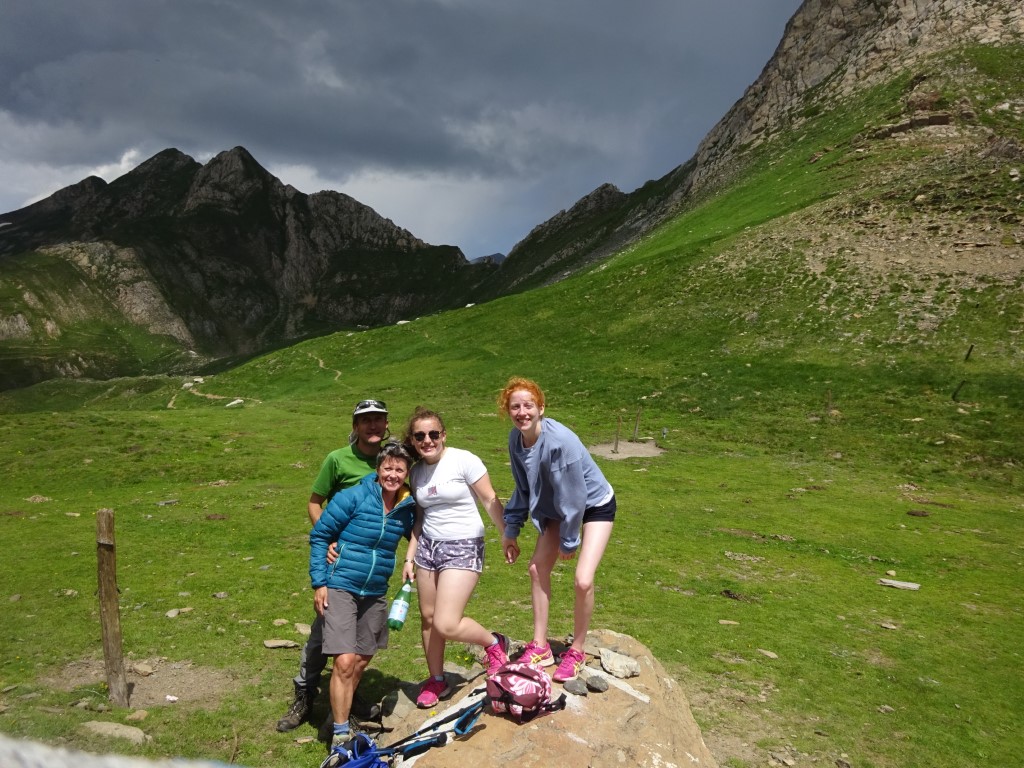 How to entice 2 young girls to walk 12km and 700m vertical….”fancy lunch in Spain? and a swim on the way back?” It worked…..early start butties made and off we headed up towards Port D’Aula on the border. The first 40 mins is steep and a fair bit of “how much further” being muttered but after that it is easier going and both girls made it up to the col where we had lunch and saw the thunder clouds building big time on the Spanish side.