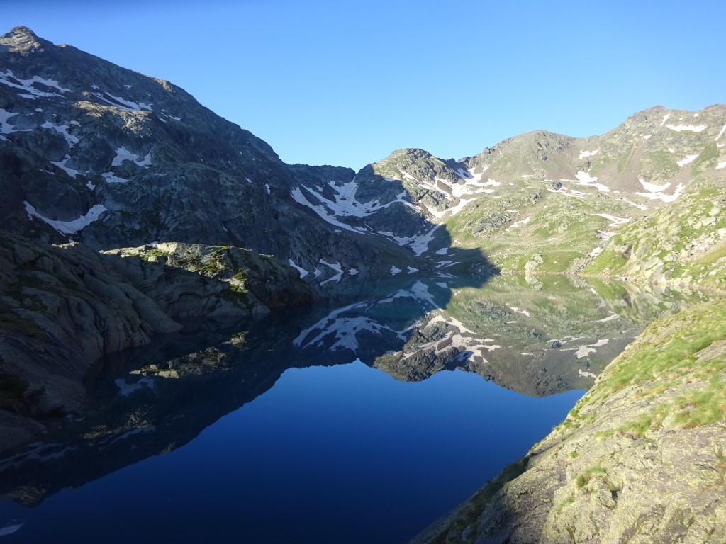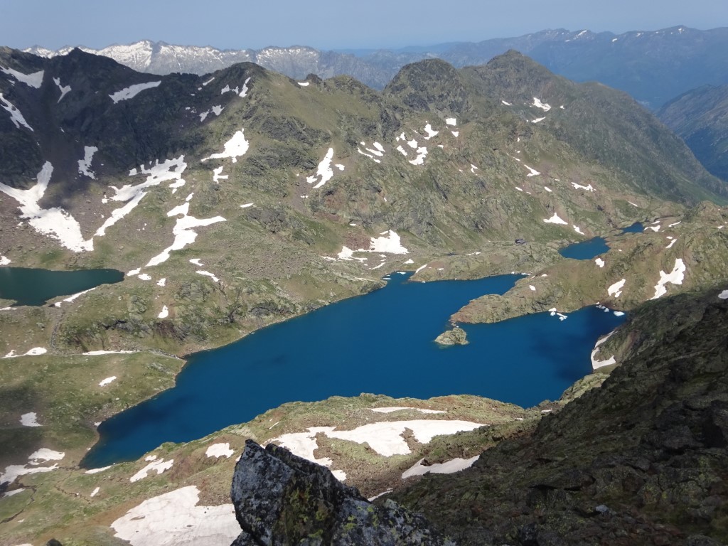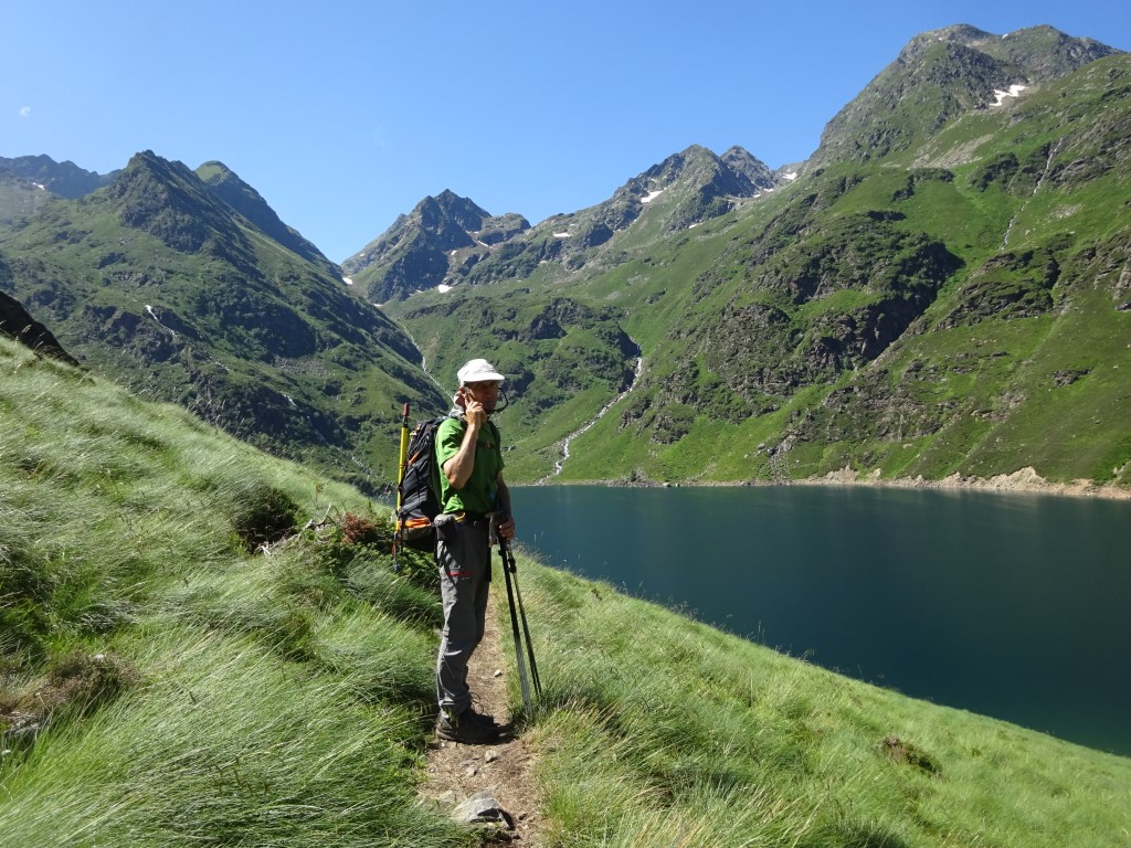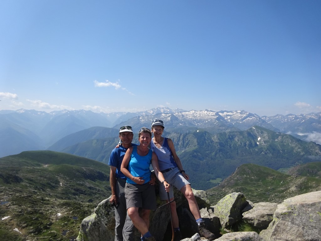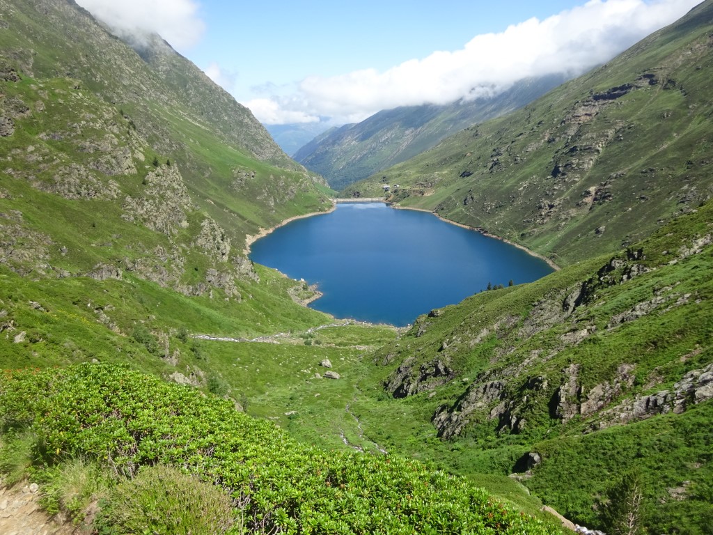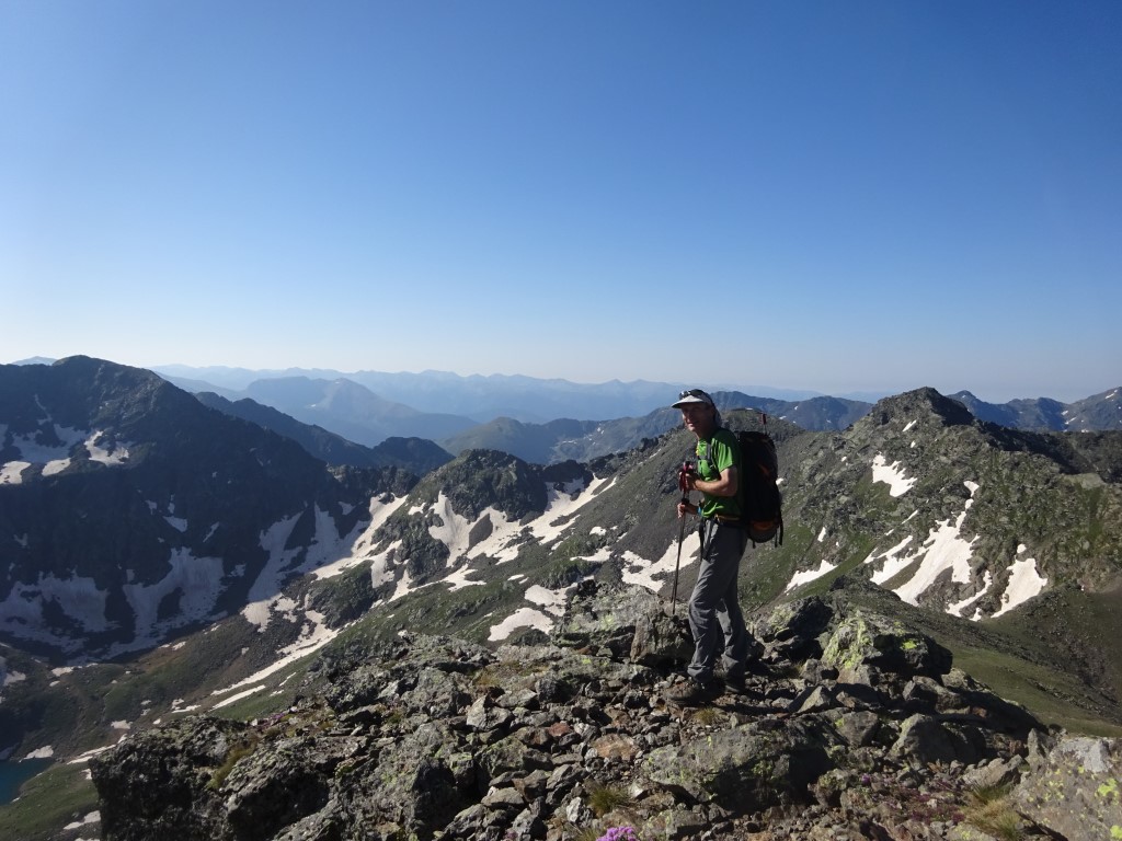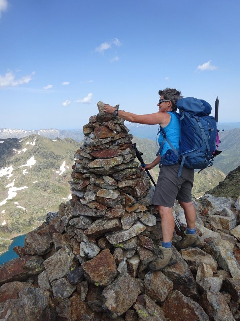 How to entice 2 young girls to walk 12km and 700m vertical….”fancy lunch in Spain? and a swim on the way back?” It worked…..early start butties made and off we headed up towards Port D’Aula on the border. The first 40 mins is steep and a fair bit of “how much further” being muttered but after that it is easier going and both girls made it up to the col where we had lunch and saw the thunder clouds building big time on the Spanish side.