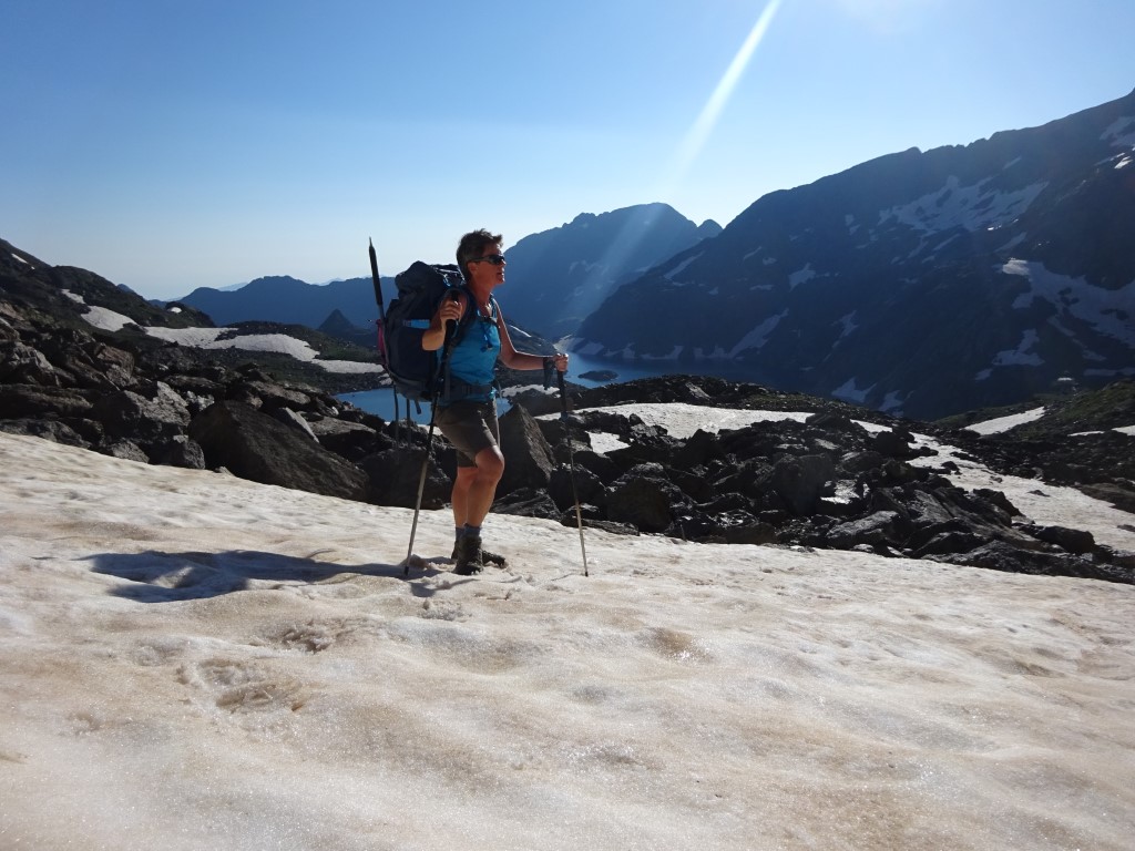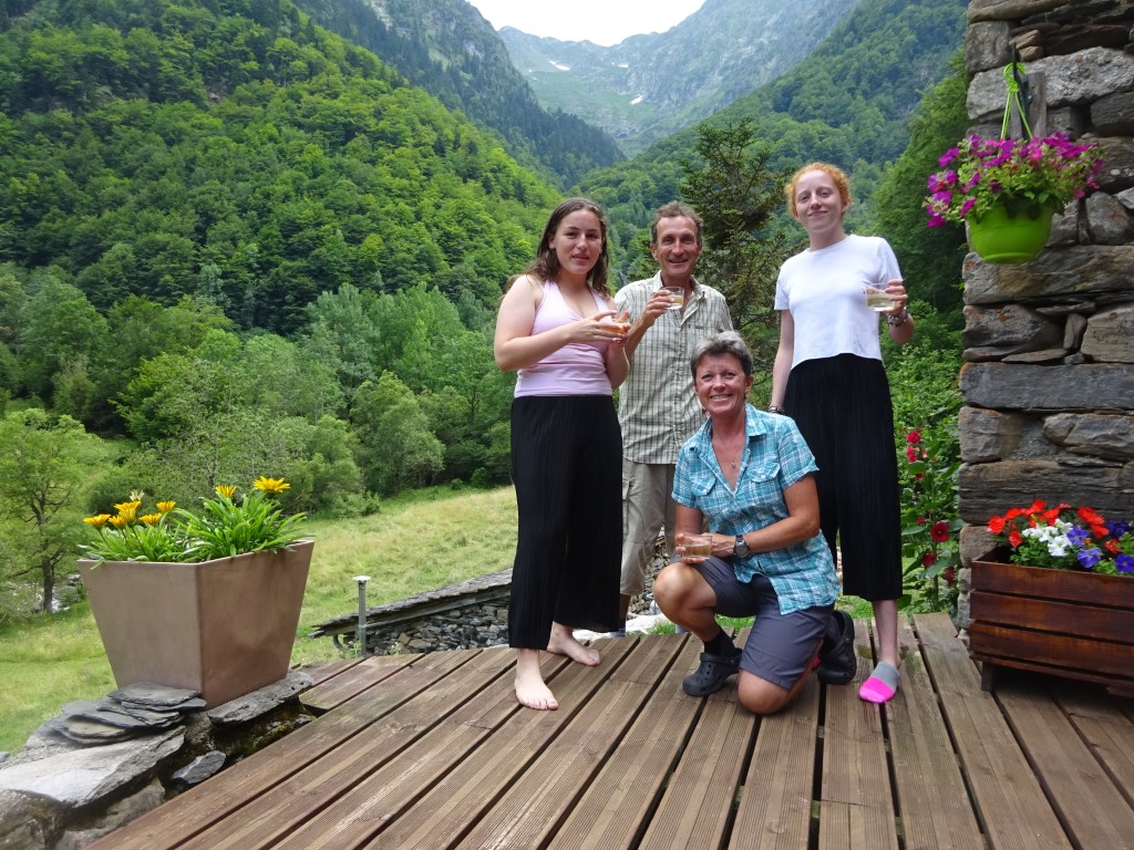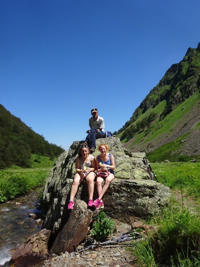 Last day and I think the girls were looking forward to creature comforts again!!! Namely a dishwasher and a flushing toilet!!! We started with some DIY re varnishing the helipad till we ran out of varnish. Girls into the river again before we headed up to Cirque D’Anglade for a hike and picnic lunch. Again steep start but serious speedy yomping by the youngsters up to the meadow and lunch at the picnic rock. Al and I trundled on up to the snow which was pretty impressive, doubt it will all disappear before winter kicks in again.