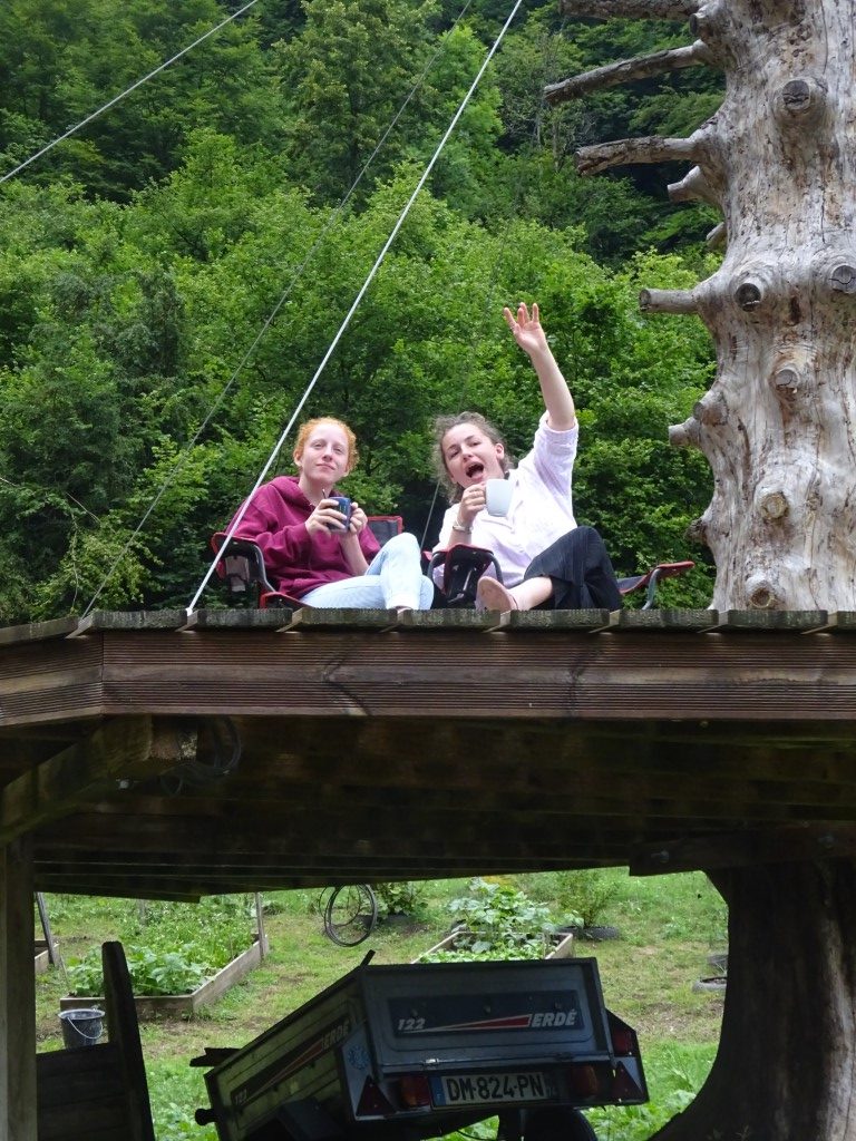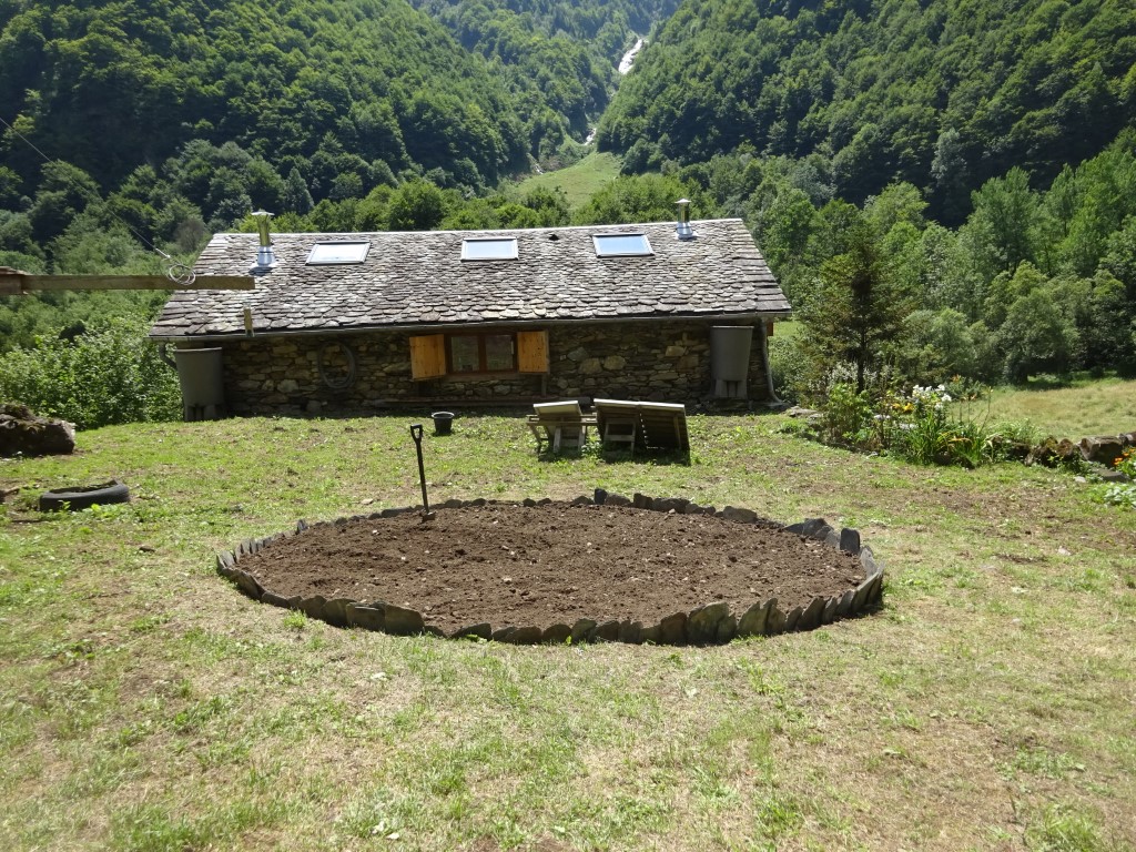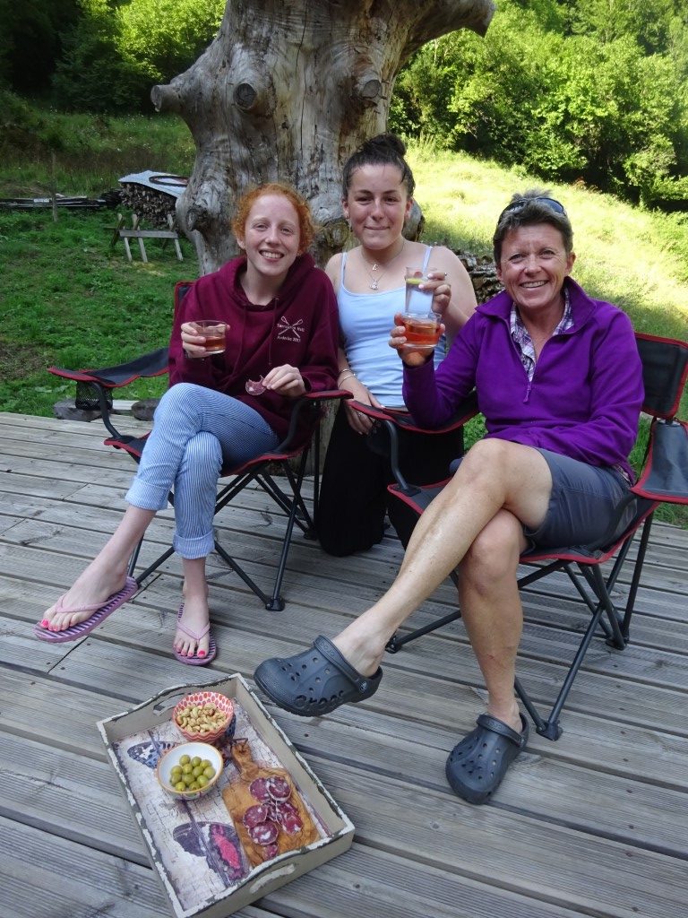 Another baking day and today was mainly a barn day with trips to the river to cool down. Morning was dinner prep, making homemade pasta for spaghetti bolognaise and a joint team effort making the bolognaise. They make a great spag bog that was for sure. One of the jobs needed doing was edging the flower bed with slates. So the girls set to with sorting the flower bed whilst Al and I moved a load of logs from the coppicing area to the log pile. Once done, girls were off to the river before lunch on the terrace. Clive and Mateus turned up on their bikes for a catch up, nice to see them again. Girls and I headed off to the first waterfall for a swim and the girls then worked their way down stream scrambling back to the barn. Quick turn around and the ladies trundled down to the Auberge on foot and Al brought the van for a ride back up the hill. Treated to cold drinks at the Auberge for a game of boules, definitely not their strengths thrashed they were 11-1!!!! Back up the hill, girls made a quick salad and it was then spag bog inside after a game of rummikub in front of the fire.