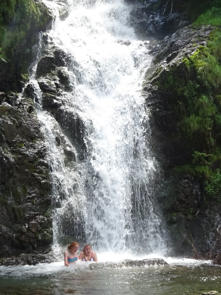 A quick yomp down with a few drops of rain but girls and I were keen for a swim in the first lake so we decided to see if we could all swim across it. Emily looked slightly like she was about to drown! but made it with a smile and both of them managed to talk the whole time so it cant have been that hard! We then got caught 10 mins from Billy in a massive downpour so we were all suitably soaked to the skin. Back to the barn which was in sunshine and hot choccys on the helipad whilst the girls warmed up. Sun stayed and the rain vanished so we could have out BBQ outside with girls making all of the salads and Emily made a choccy mars bar cake for pudding/snacks for rest of the stay.