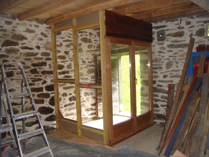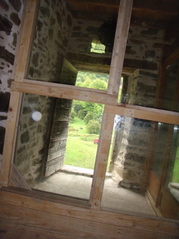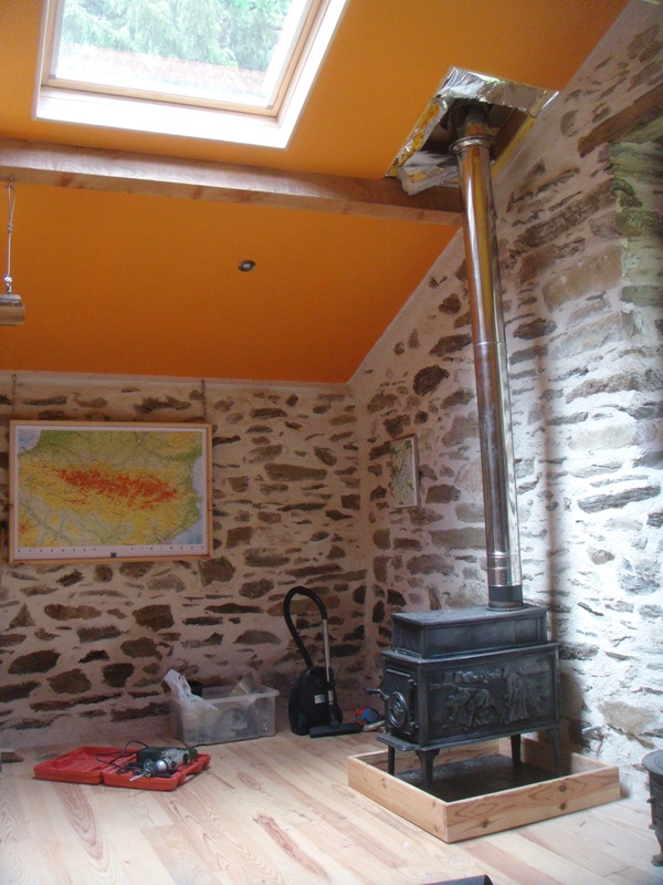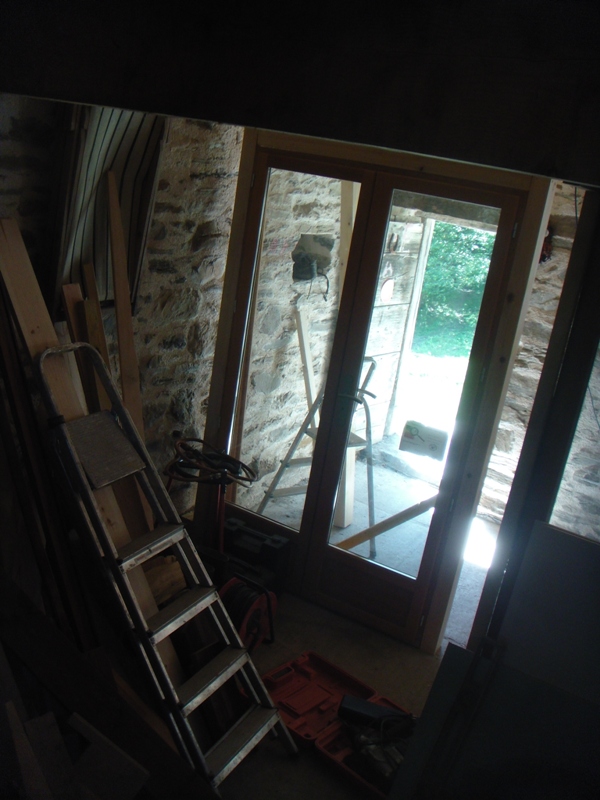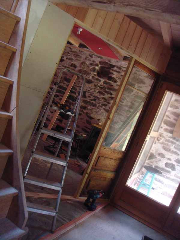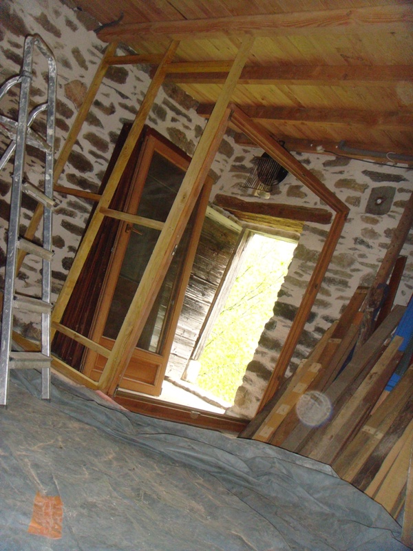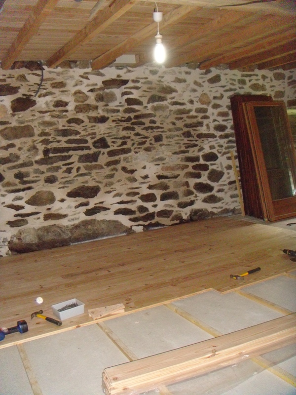 Having reroofed the barn initially, slowly the interior is taking shape. Once the walls and windows were sealed the ceiling went in. Furniture and other items were salvaged from the cki resort of Chamonix and carted down. It is amazing what can be salvaged with time.