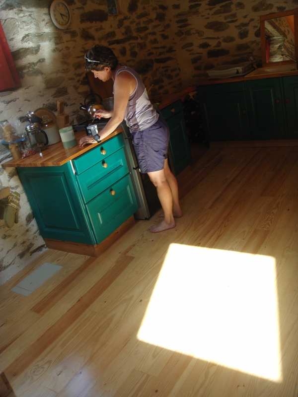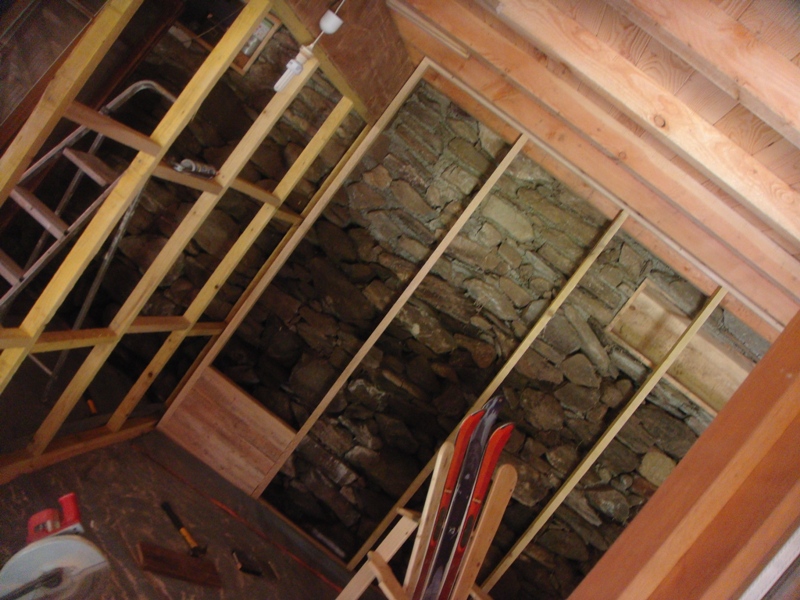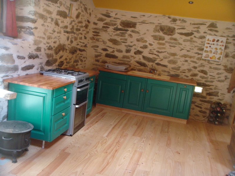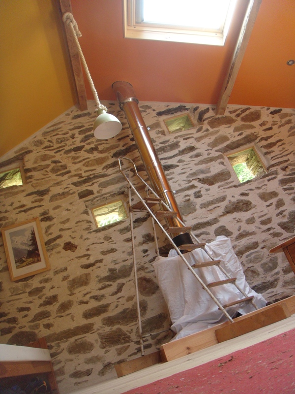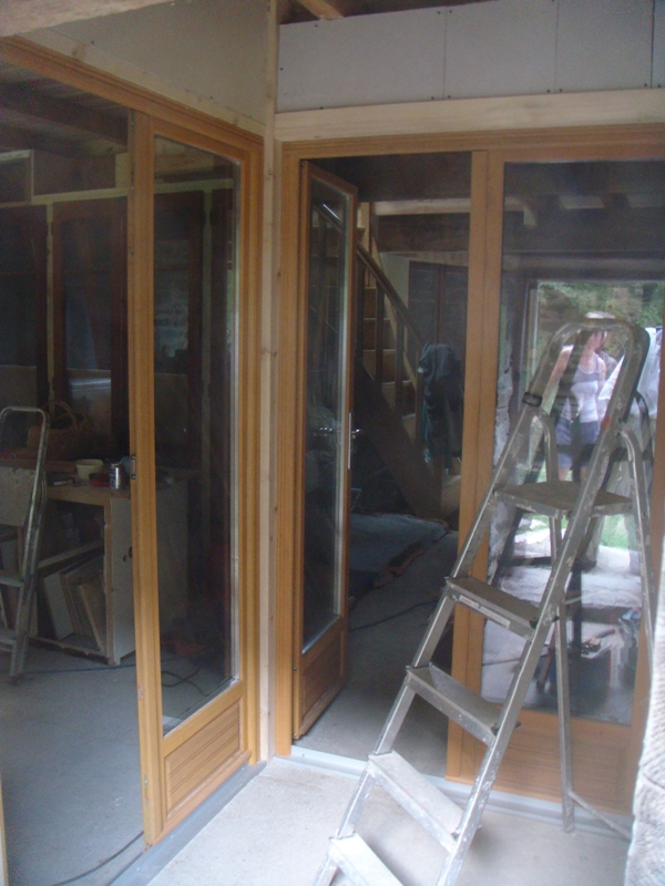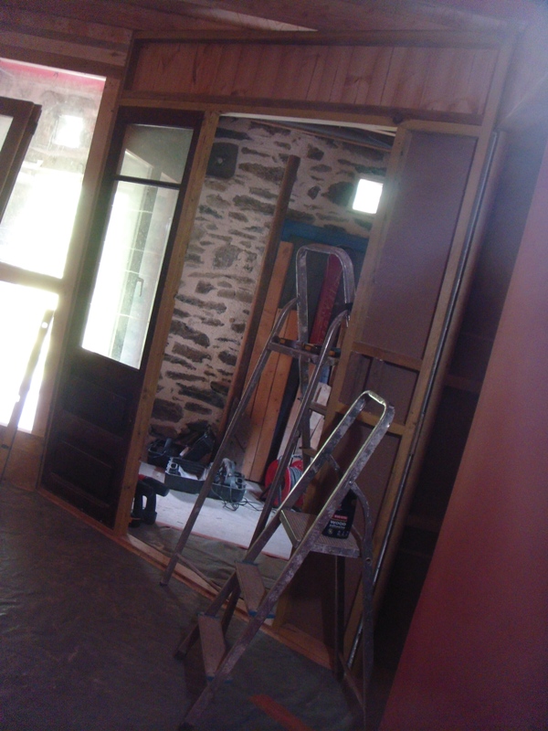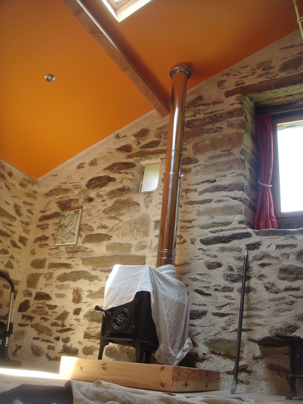Having reroofed the barn initially, slowly the interior is taking shape. Once the walls and windows were sealed the ceiling went in. Furniture and other items were salvaged from the cki resort of Chamonix and carted down. It is amazing what can be salvaged with time.