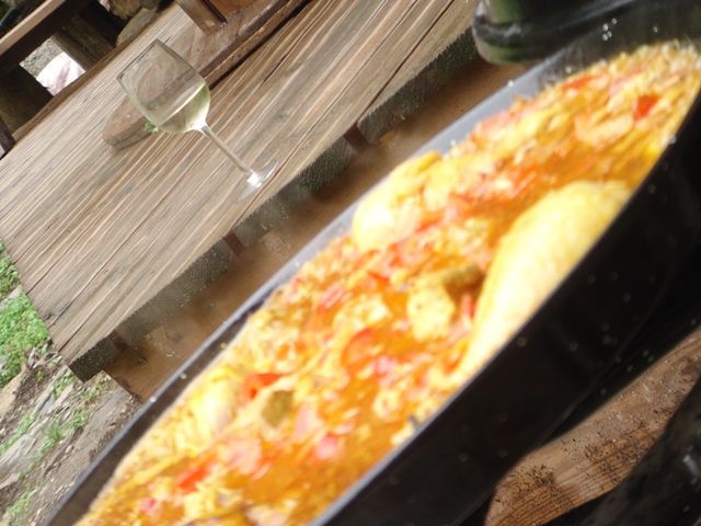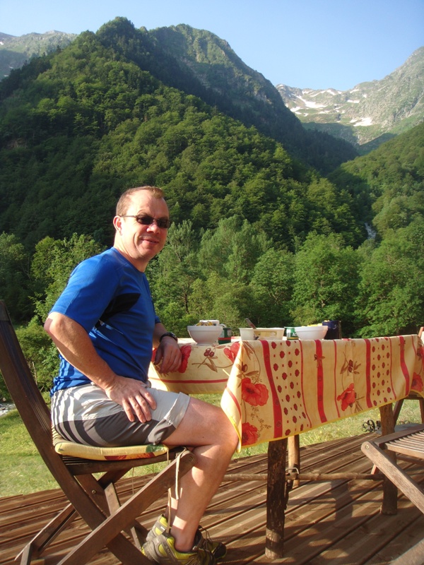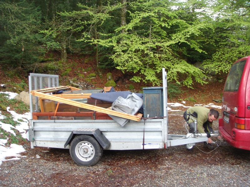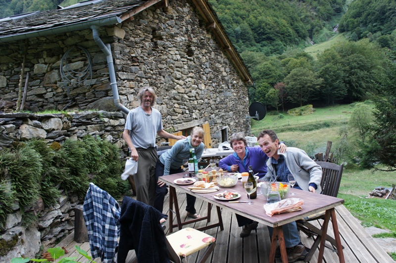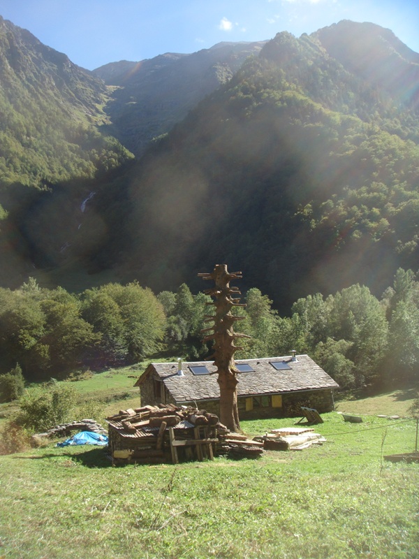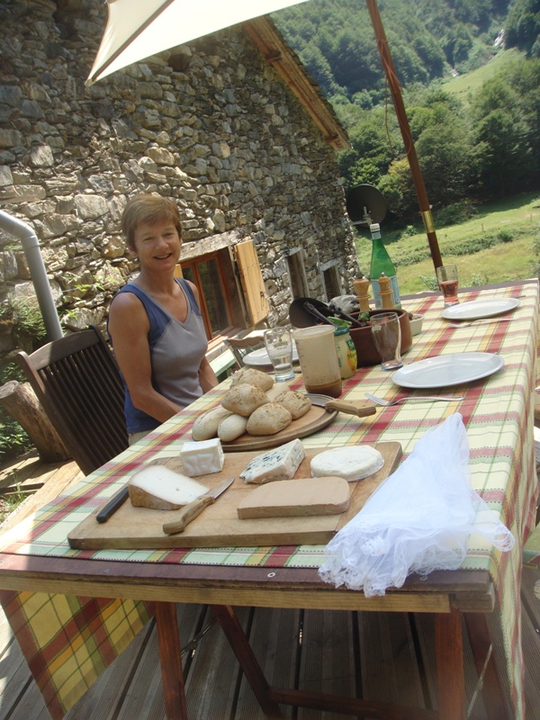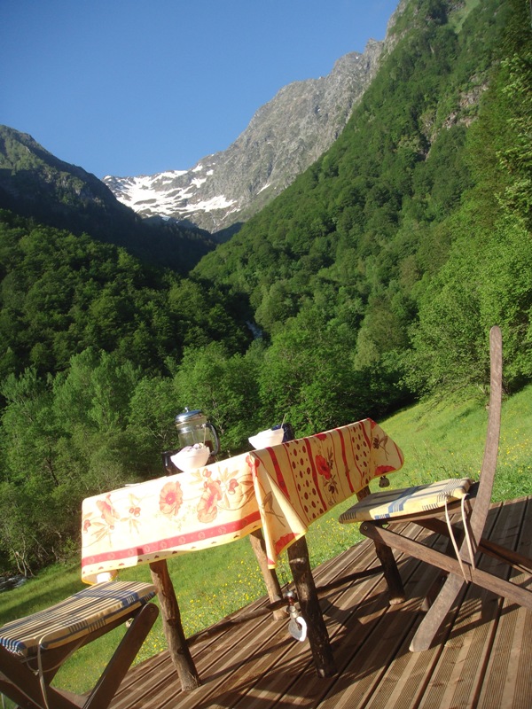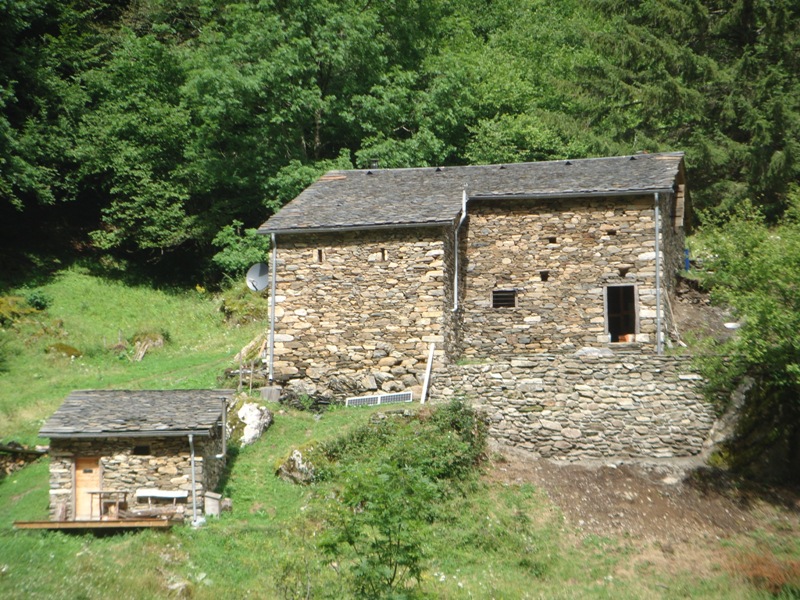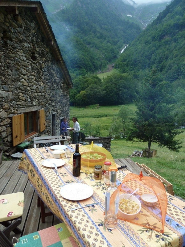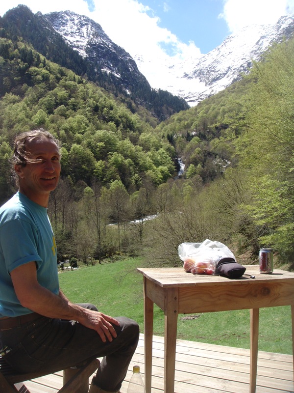 Outside the barn we have built some wooden terraces which give us outdoor living spaces and also flat surfaces to work on. In 2013 a large retaining wall was added at the front to protect the foundations of the barn. Behind are now a number of raised beds for fruit and vegetable growing.