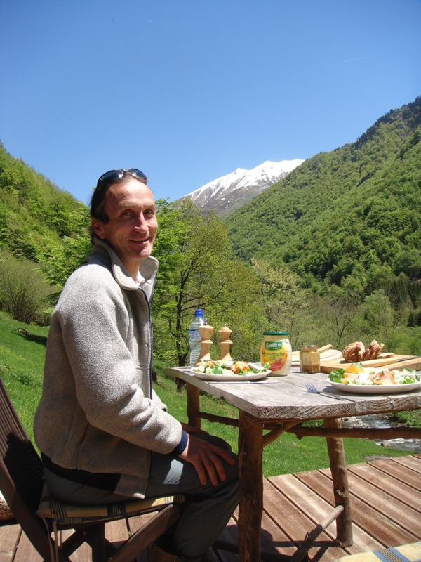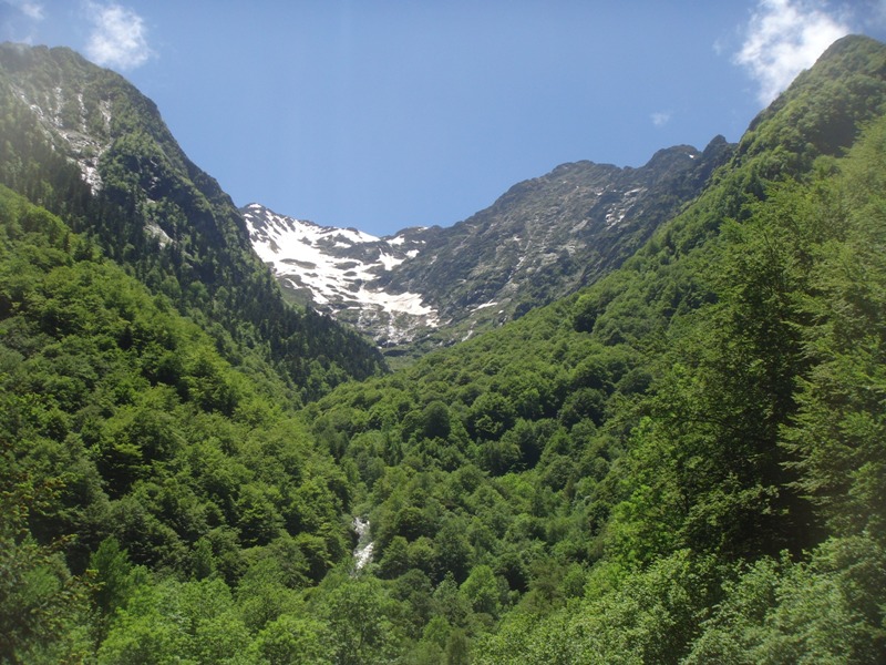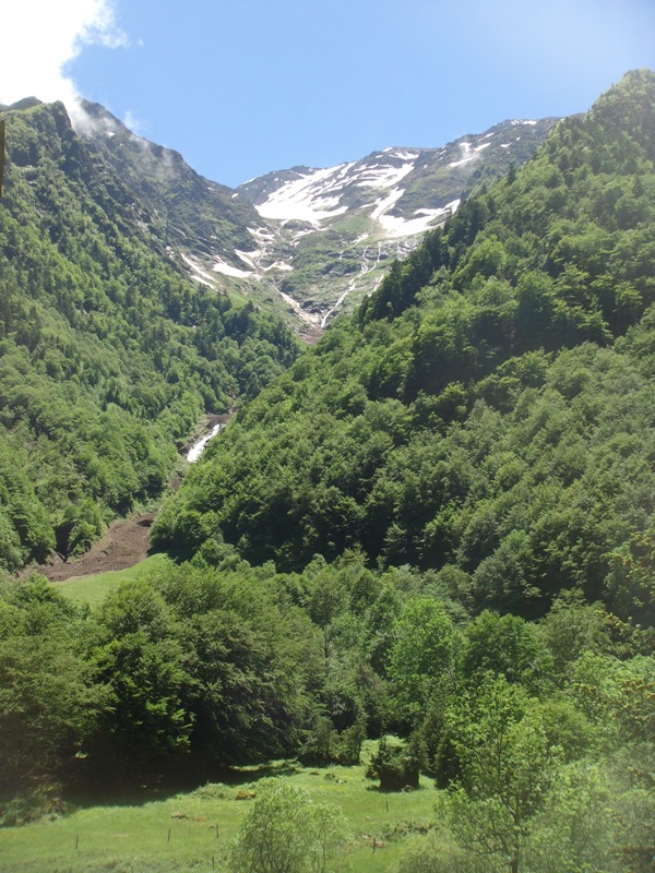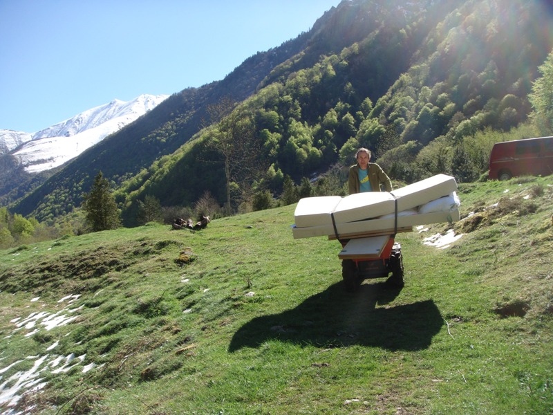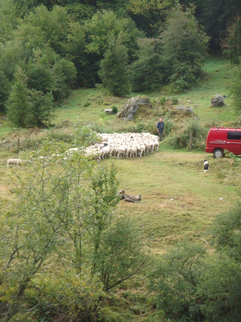 Twice a year the shepherds move the animals up and down to and from the high pastures. Snow lingers on the hill into the summer months. Foraging for food is fun.