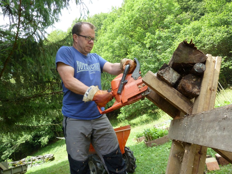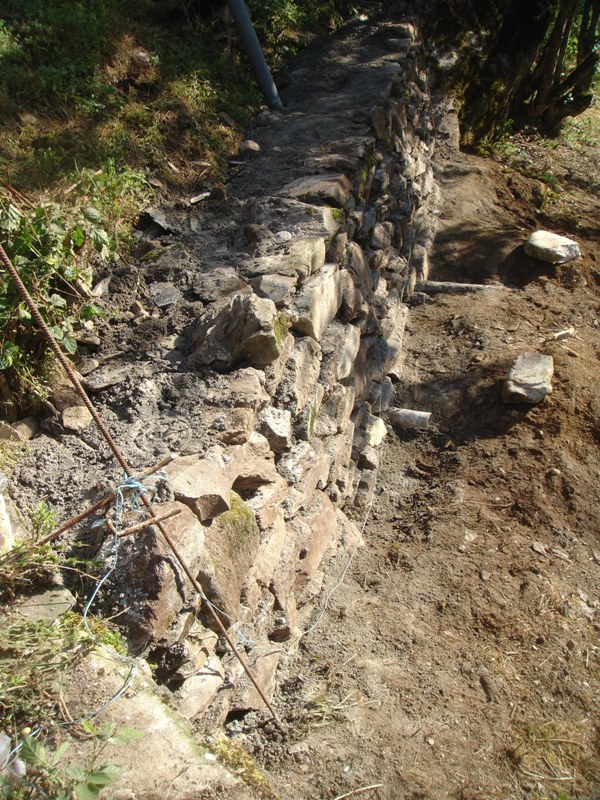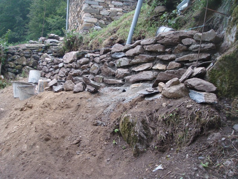 Copicing the woodland is a continual effort to preserve the pasture and supply firewood for the log burners. Plus building the retaining wall at the front of the barn to protect the foundations.
