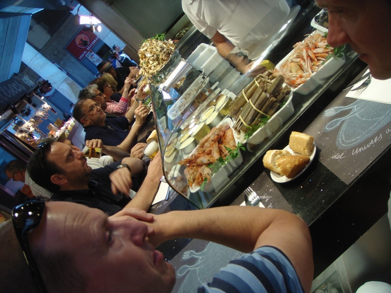 It didn’t take him long to decide on Rioja in Spain. Partly down to the wine and partly down to the food. Now, the Rioja area, or region, is different from the Rioja wine area. This may sound obvious but the Rioja wine area crosses into the Basque are to the north. This is the area famous for Pinxos, Small bites of food rather than tapas, often displayed on the bar. Racionnes are also available which are more the tapas style sharing platters. Each bar specialises, or is known for, a specific Pinxos. Also Pinxos are usually eaten with a glass of wine. You may be able to see where this is going. Each bar you go into means eating something that is two mouthfulls and incredibly yummy, and consuming a glass of wine. There are a lot more bars than my capacity to drink wine.