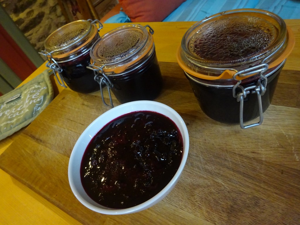 Other guests fall into one of two categories, welcome and unwelcome. Deer are welcome as long as they don’t eat from the veg and fruit garden. Though it must be like stumbling across a tuck shop with the door wide open and nobody in attendance. Unwelcome include voles, of which we seem to have an abundance. They burrow everywhere trashing the lawn (which not long ago was a field) and eat the roots of the plants. Having read that they hate daffodils, these have been planted at strategic points to deter them. They also don’t like coffee so we are scattering all the coffee grinds from the local Auberge around the garden. We have also invested in a solar sonar thing which buzzes every few seconds during the day. Then there is Chilli, Alison and Peters dog, which eats at least two each visit by digging up the garden. Chilli, though destructive, is in the welcome category.