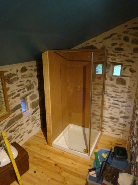 Well now, our days of showering under a tree outside are numbered. We are still gonna be using a solar shower bag for a while but when the wind is cold and it is raining cats and dogs we are gonna have the luxury of showering indoors.
