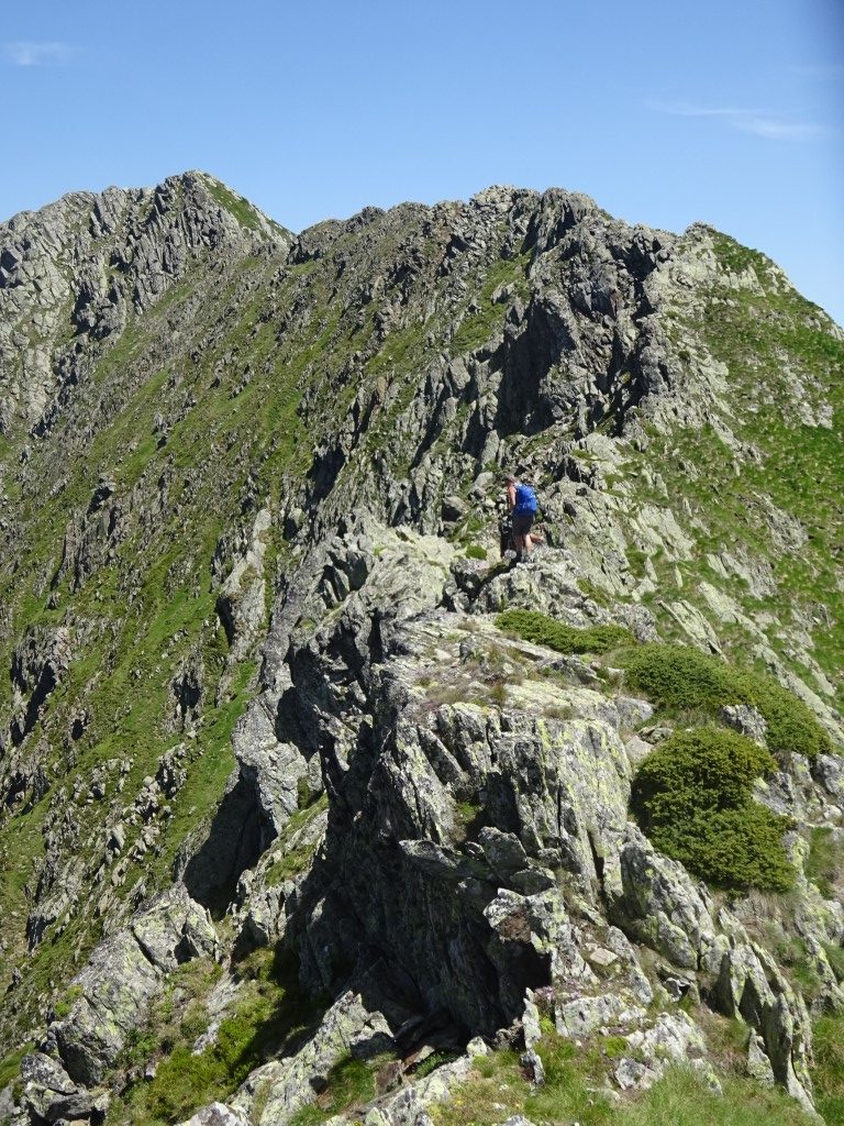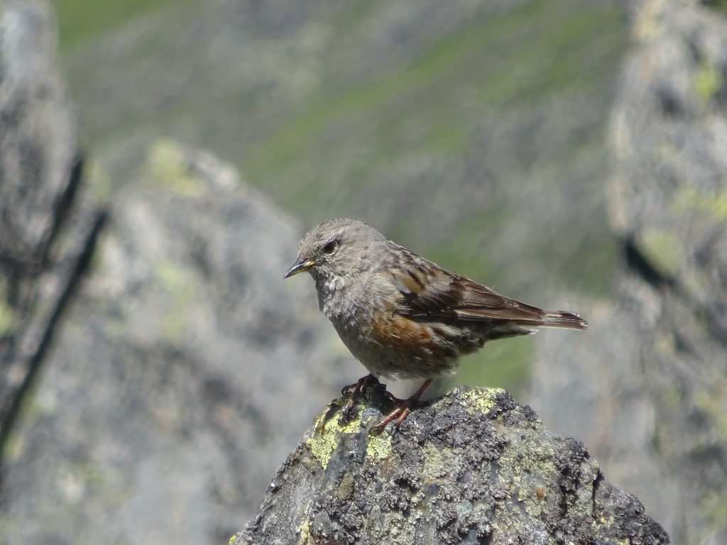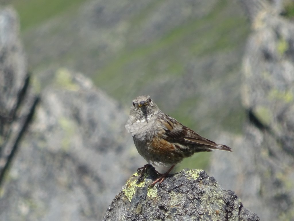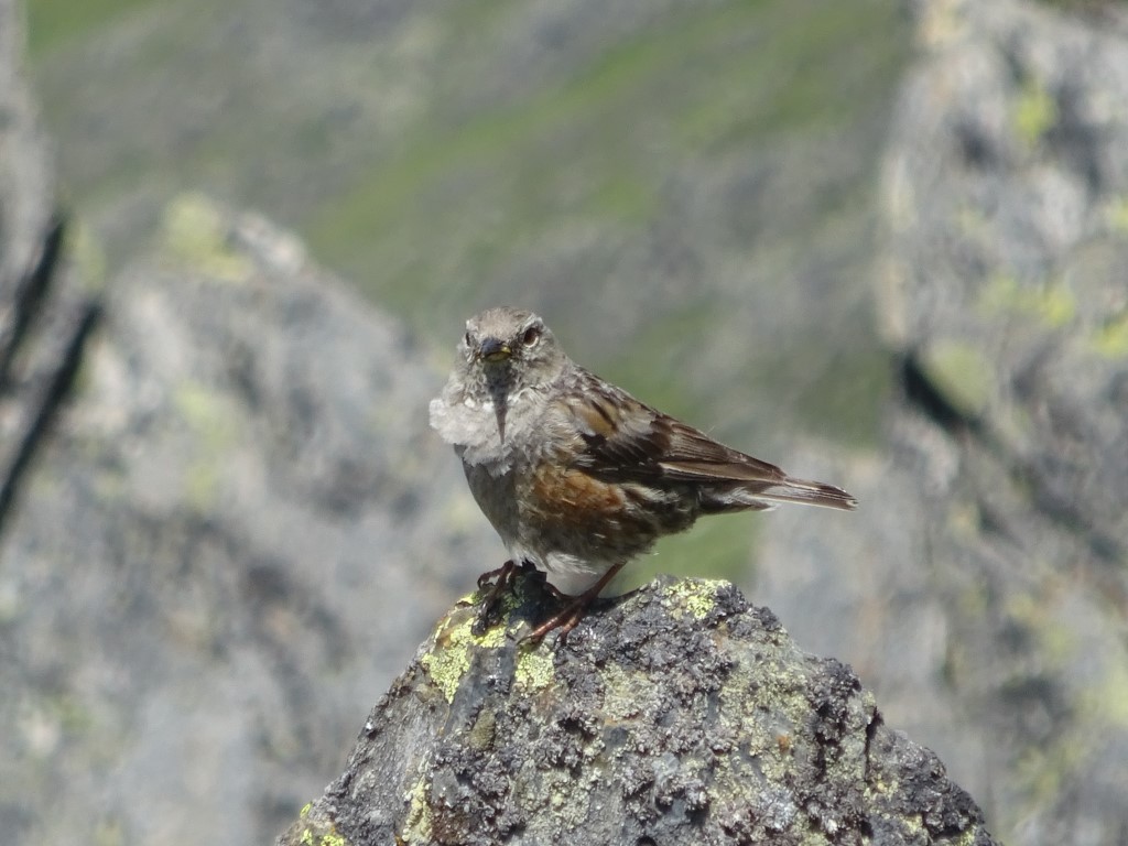Lunch, then just over an hour to traverse the scrambly ridge over to Cap de Rhuos accompanied by lots of Alpine Accentors. The descent was via Col de Crusous and the steep path (well marked with paint, cairns, and a deep rut in the ground) back to the van at the mine.