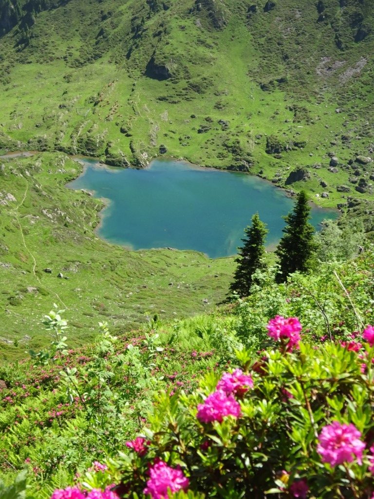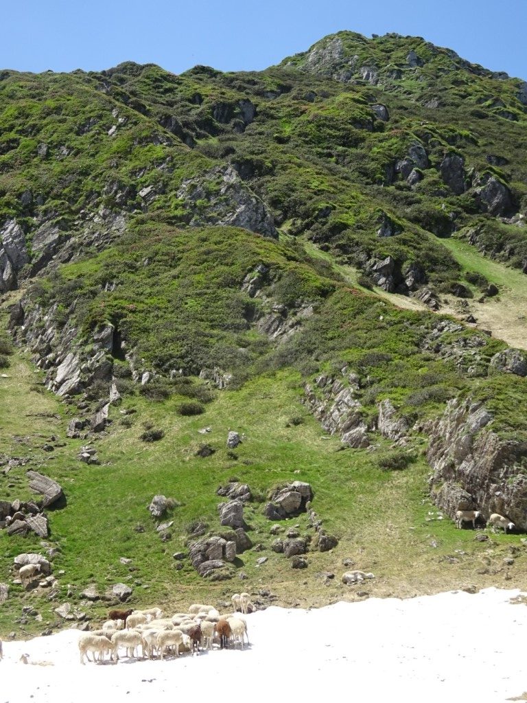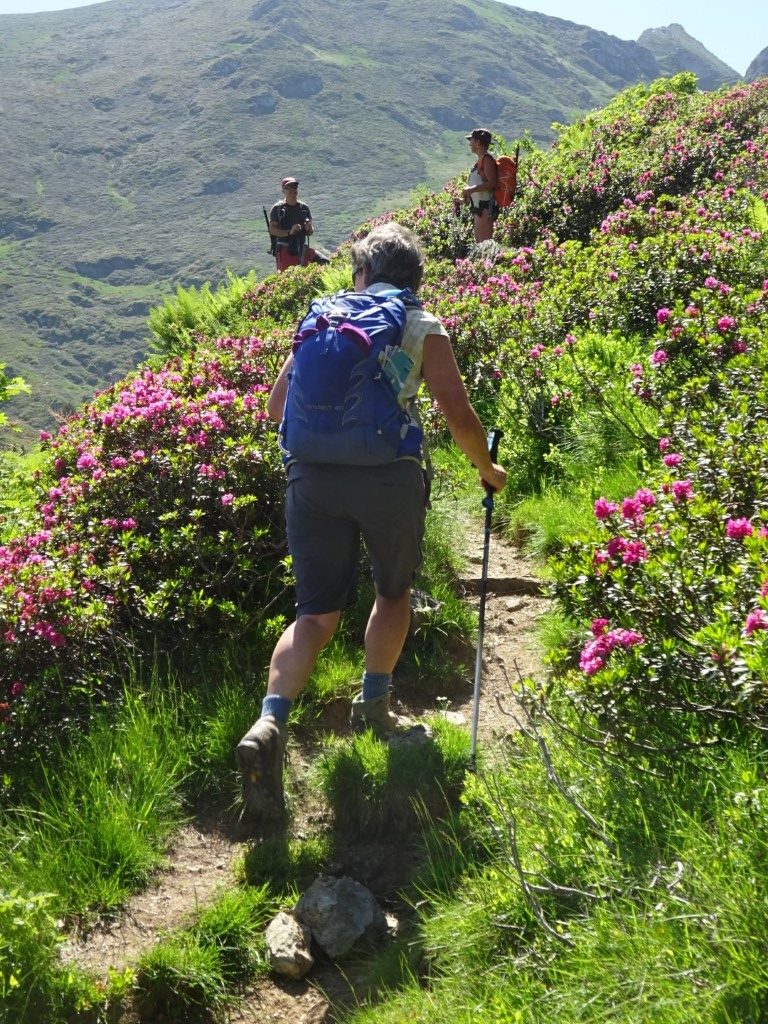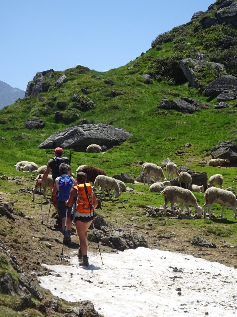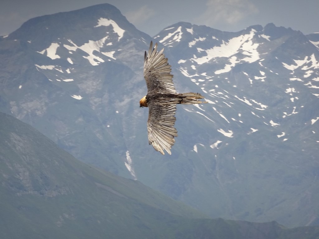 It was a scorching hot day and Lee and Suze picked us up from the bridge in Seix and took us up to Col de le Core. The initial plan was a walk and catchup with a dip in a lake. The GR10 took us up to Etang d’Ayes which is a great swimming spot in a beautiful lake, but we continued up towards Pic Montgarie via Etang Bellonguere (a somewhat muddy pond full of tadpoles). Snow still lingered in sheltered spots on the route up before the scramble to the top which gave magnificent views of Valier. We were fortunate enough to get some close up views of a bearded vulture soaring above and below us.