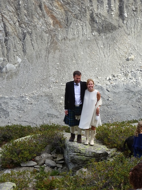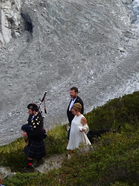 Saturday the sun was shining and we popped in to see progress on the chalet extension which is going to be great and I am confident they will be finished before we go back. Going to make a big difference. Dropped our kit with Lisa and then headed into town for a quick bite to eat at Elevation (bumped into Mark) so he joined us for a drink before we headed up on the train to Montenvers. A very original wedding with a 20 minute walk up the hill to a view point where we all sat on rocks and waited for the bride and groom and poppy their dog to walk down to the venue. Bagpipes playing, sun was shining and amazing views. The bagpipes played us all down the hill, on to the train and through town back to UCPA for the reception. Great mix of folk from all over the place and a great night.